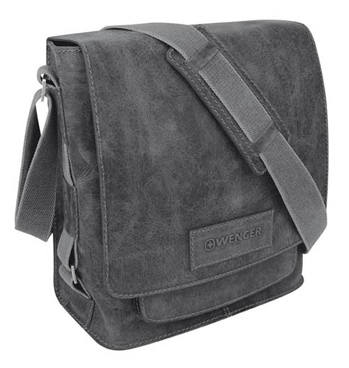 Сумка наплечная вертикальная А4 WENGER "ARIZONA", черный, кожа, 35х13х36 см