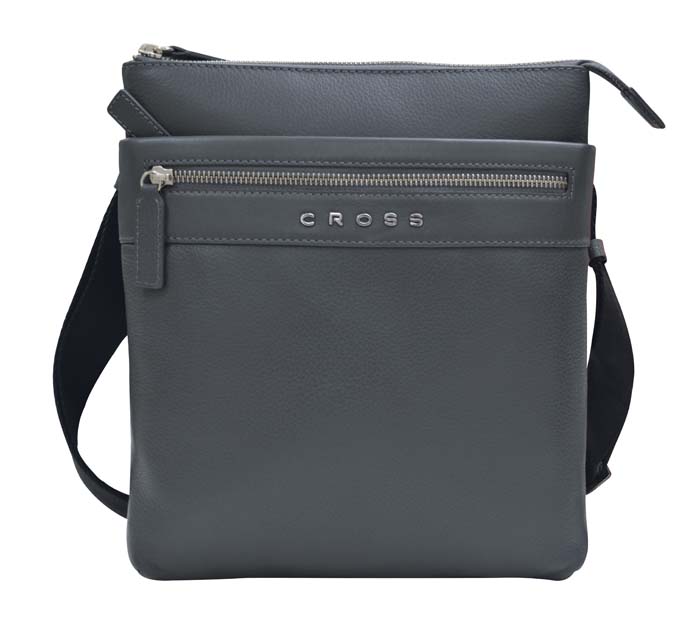 Сумка наплечная, Cross Nueva FV, кожа наппа, фактурная, серый, 26 х 25,5 х 3 см