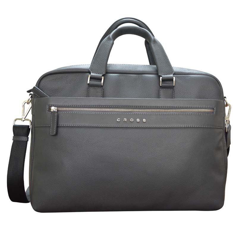 Портфель, Cross Nueva FV, кожа наппа, фактурная, серый, 40 х 17 х 29 см
