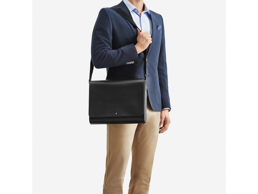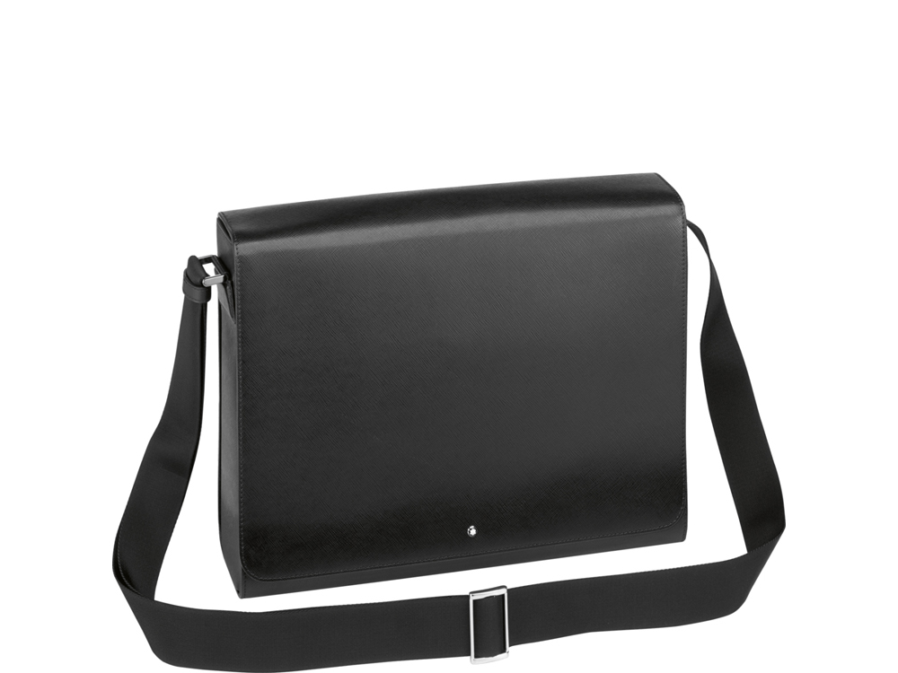 Сумка из кожи с тиснением под сафьян, подкладка из жаккарда с фирменной маркировкой Montblanc, регулируемый плечевой ремень, клапан с двумя скрытыми магнитами, фурнитура с палладиевым напылением, эмблема Montblanc в кольце с палладиевым напылением