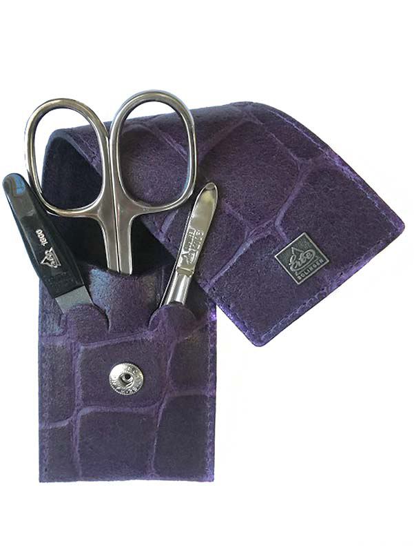 Маникюрный набор Erbe, 3пр. Футляр: натур.кожа, цвет фиолетовый