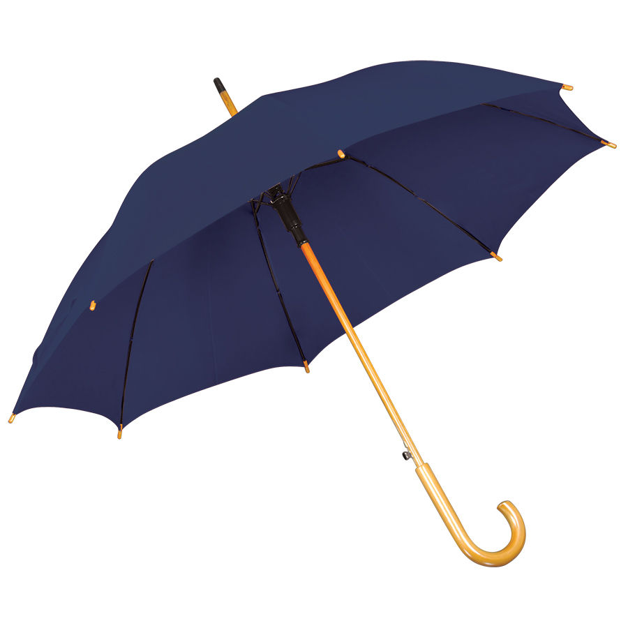 Зонт-трость с деревянной ручкой, полуавтомат; синий; D=103 см, L=90см; 100% полиэстер, синий, 100% полиэстер, плотность 190 г/м2